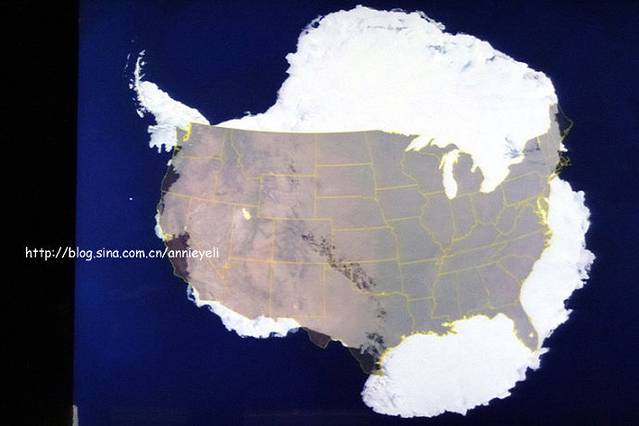哦,在地球上只有两个地方有冰盖(ice sheet,即指连续的冰川覆盖50,000 km2以上陆地):南极洲、格陵兰岛(antarctica & Greenland)。