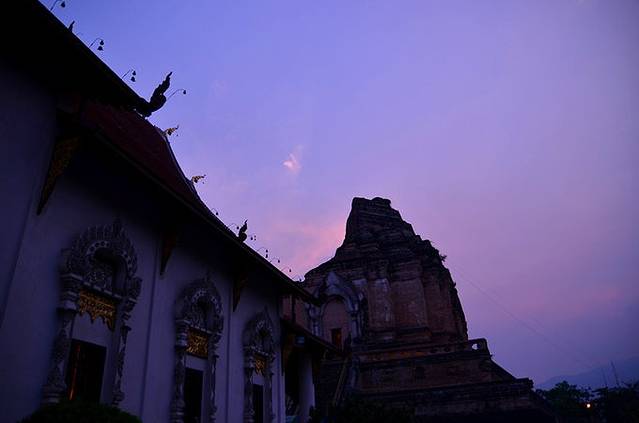 尤其是日落时的契迪龙寺,在一抹斜辉中,雄伟的轮廓尽显神圣的美。
