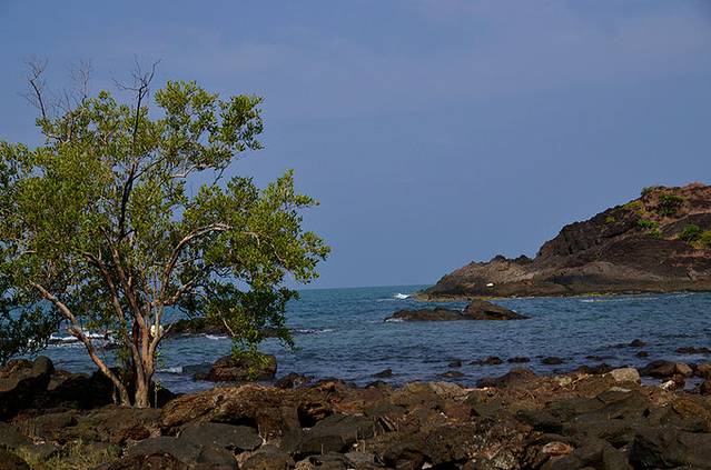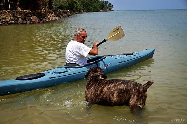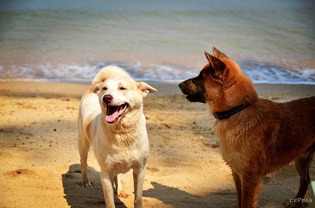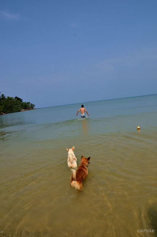 一个来自欧洲的人在那里开了一间租皮划艇的小店,供应新鲜的水果汁,休闲的沙滩椅随意的摆在沙滩上,三条狗跑来跑去。