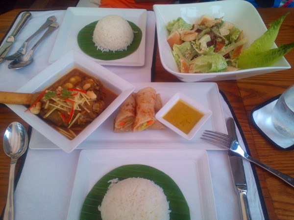 我和SU点了冰水,咖喱鸡,菠萝饭,冬荫功汤,鲜榨果汁。