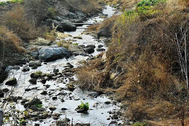 到了社港镇之后,没有直达石柱峰的车子。这时,还要转乘当地的摩托车。当看到这细长的河流时,顺便问了下摩的师傅,是不是捞刀河。