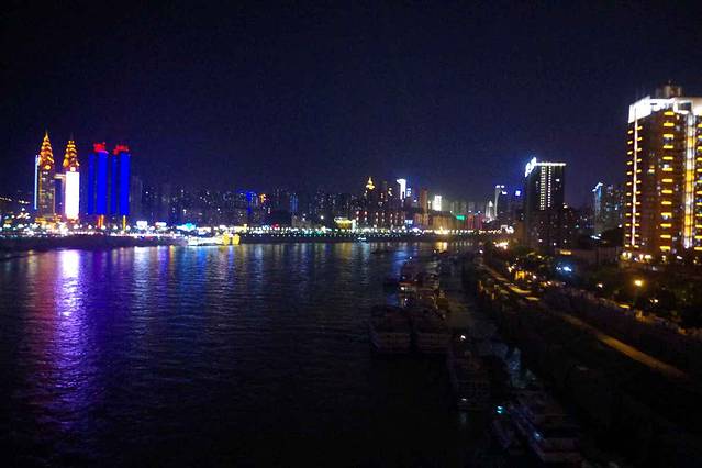 来到长江索道,10块单程票,告诉你们一个小秘密,坐在缆车里面还是挺舒服,晚上吹着江风