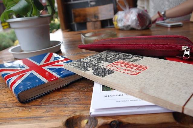 桌上放着的是我们的记账本和明信片