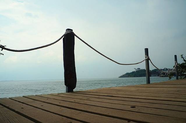 情人滩附近有一条小路,小路边有一个延展台通往湖中。我们无意间发现了这个延展台,又恰巧湖水没过了延展台,于是我们毫无犹豫的卷起裤角走入了湖中。