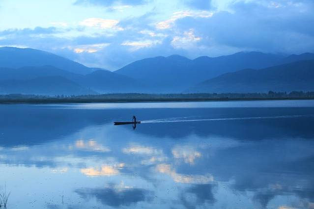 泸沽湖吸收着天地间的光亮