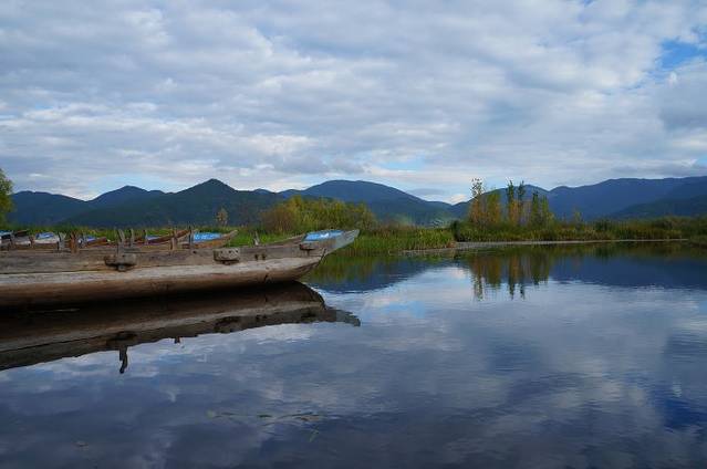 属于草海区域,能与停靠的猪槽船合影。
