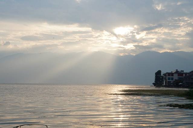 日落余晖洒满洱海