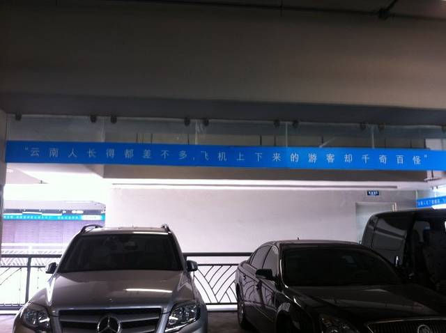 “云南人长得都差不多,飞机上下来的游客却千奇百怪”——停车场中的标语。这是在玩冷幽默吗?