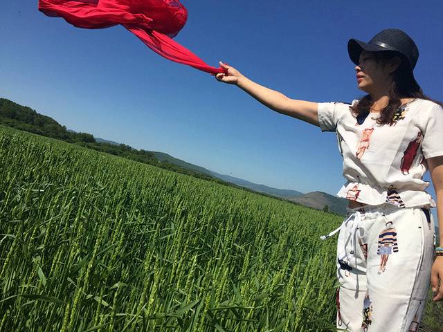 “如果可以的话我想醉在你的怀里,如果可以的话我想站上云端,如果可以话我想摸一摸蓝天的脸,今天我都实现了。呼伦贝尔,我在你的心上吗? ”