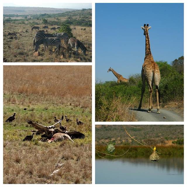 Nambiti conservancy占地超过2万公顷,栖息着非洲五大动物(狮子、大象、犀牛、野牛、花豹)。出发前ranger就叮嘱过我们safari时候的注意事项,包括坐在车上不要随意站起,更不要在未经许可的情况下下车。最先与我们打照面的是一群斑马,大伙儿远远就看到它们在远离土路的一片草地上闲适地用餐。过同学悄悄说:“难道safari是要离这么远观察动物的吗?”答案当然是否定的,随着车行深入,safari的乐趣愈发显现出来。