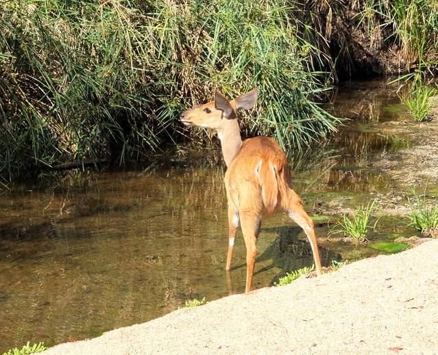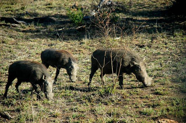 除了“五大”,这里还有许多大大小小的野生动物等着我们去发现。最常见的是各种羚羊,比如臀部有黑色条纹的黑斑羚(Impala)、脖子下方长长毛的捻角羚(Kudu)、还有会散发难闻气味的水羚(Waterbuck)。几次猎游之后我自以为学到了不少,一次午饭时瞧见营地后方不远处的水塘边来了一只羚羊,我得意道:“瞧,waterbuck!”正巧来上菜的服务生马上纠正:“不,那是bushbuck。”唉,这里物种之丰富,真是一辈子也学不完啊。当地人和向导们都有着敏锐的眼力,他们总是能发现远处的小动物或是高处的鸟,而我就只能后知后觉地借助望远镜来一窥他们的样貌。也许是源于丰富的野外知识和长期的生活经验,总之不管是后天习得还是先天赋予,我对他们的这一本领深表钦佩。