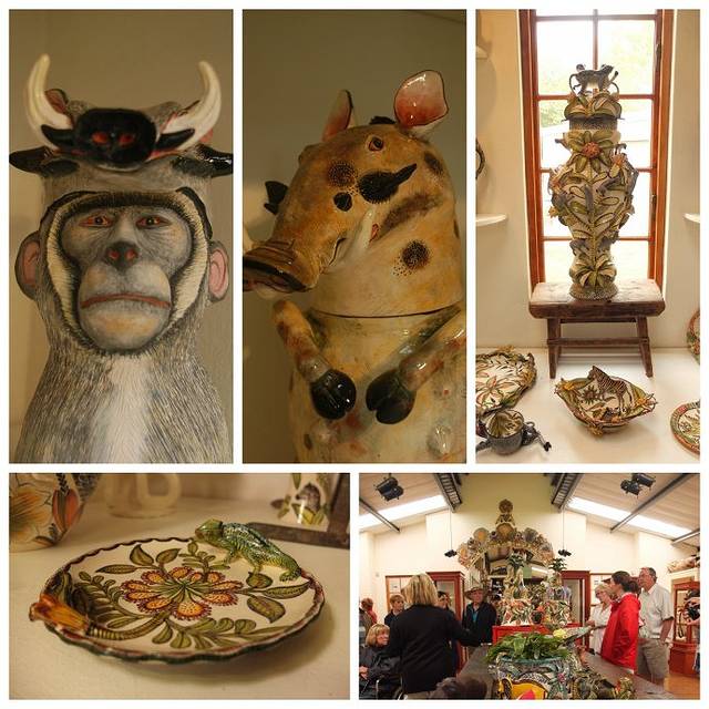列车上的最后一天,我们在上午来到Ardmore陶艺作坊,这也是我们第三次下车游览。作坊坐落在一处山清水秀的地方,只可惜我们去的那天乌云密布,冷飕飕的,不然在户外喝喝茶,吃吃点心一定非常惬意。作坊分为制胚、上釉、成品展示等好几个部分,所有的作品都是由本土艺术家制作完成,在南非多家博物馆,甚至美国、瑞士等地都有展出。同行的一位友人更是专门为这家陶艺作坊而来,想要购买几件作品收藏。在我看来,这里的艺术家们一定是受了非洲大地丰富的色彩和多样的物种启发,因为每一件作品都带着淳朴的灵气,色彩鲜艳而饱和,形象丰满且生动,有一种充满张力的生命律动。