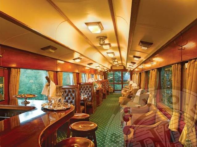 在非洲之傲列车上,复古的不仅是家具陈设,还包括饮食起居。正式而隆重的晚餐最得精髓,因此餐车绝对是车上非常重要的地方。用餐仪式从服务生到各包厢门前摇铃(确切的讲应该是打击乐器发出的清脆旋律)提醒开始。在宾客们陆续到达的时候,精致的餐具已经被摆在了洁白的桌布上,早餐和午餐时木百叶窗会被收起,敞亮的光线充溢着餐车,田地牛羊触手可及。而晚餐时真实世界则被隔绝窗外,每一张脸在灯光和烛火的映衬下散发出柔和的光芒,衣香鬓影、觥筹交错,仿佛列车载着我们穿越了时空,回到19世纪英格兰的庄园古堡。