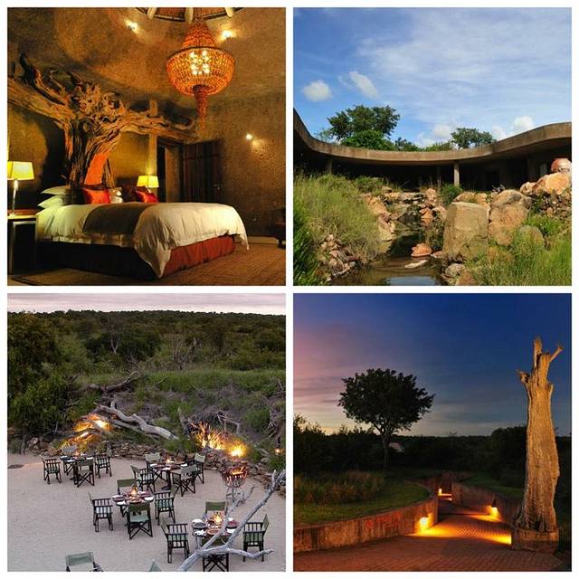 四座子营地互相之间相距甚远,我们提出希望参观一下另外两座,赛拉提营地十分乐意安排。于是在傍晚猎游前,Lee开车载我们驶往丛林营地(Bush Lodge)。丛林营地的风格与小丛林营地相仿,都是“今日”主题,它是萨比萨比规模最大的一座子营地,一共有25间套房,有能力接待大型团队,甚至还有一间备有投影仪的会议室。我们到达时这里的住客正准备出发去猎游,一溜儿越野车整齐地排列开来,这阵势太有震撼力了。要是哪家公司选择在这里举办会议,那可真是无敌了。因为营地满房,我们无法入内参观,便又赶往大地营地(Earth Lodge)。与其他三座都不同,意在表现“明日”主题的大地营地线条简约,颇具几何造型的后现代意味。13座套房并列排开,面向有河马和鳄鱼出没的水塘。房间的入口非常隐蔽,需要顺着螺旋下降的走道才能进入,因此从外面看,整个套房仿佛与周围的环境浑然一体,打个比方就像是陕北窑洞,掩映在起伏的地表之下,这大概也体现了设计者的建筑思路和环保理念。同样由于满房,我们没有进入,但通过网上的宣传图片也能够窥探一二。