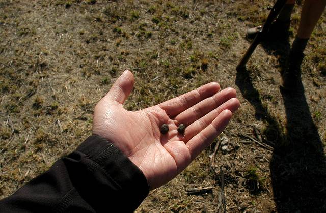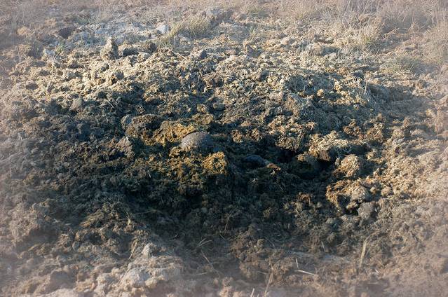 本来我觉得认认动物认认植物已经够长见识了,没想到更刺激的还在后面。Lee指着路边一堆葡萄大小的黑色颗粒告诉我们,那是黑斑羚(Impala)的粪便。接着他神秘兮兮地笑道:“你们知道吗,在南非有一种游戏,就是大家比赛,看谁能把黑斑羚的粪便吐的最远。”神马?这也能成为一种游戏?!“来,你们也试试!”说着Lee便从那一堆中挑出几颗递过来。当其时我们还处于深深的震惊中没缓过来,真的要吃——屎——?“瞧,它们外壳很硬,就像坚果一样,没关系的。”Lee继续怂恿。好吧,咱也不能被人小看了不是,玩就玩吧,豁出去了!于是过同学接过一颗,带着奇怪的表情把它含进嘴里,然后“噗”的一声吐出去,水平太差,那小黑粒就落在了跟前。大家都笑了起来,不过过同学倒是承认:“好像确实没什么感觉嘛,真跟吃进一颗坚果差不多。”而一旁的Lee可是驾轻就熟,边演示还边给我们讲解技术要点,“挑的时候要选择比较圆润的,然后卷进舌头,用舌头的力量把它弹出去,就像这样。”无奈过同学没有这方面的天赋,又尝试了几次也没有什么惊艳的表现。Lee骄傲地说,南非的全国纪录是XX米(记不得了,总之大于10米),而他的个人纪录是XX米(依稀记得是8,9米)。天呐,这该是有多无聊才能想出这样的游戏,而且竟然还有全国纪录!真是大千世界无奇不有,这趟徒步猎游太值了!