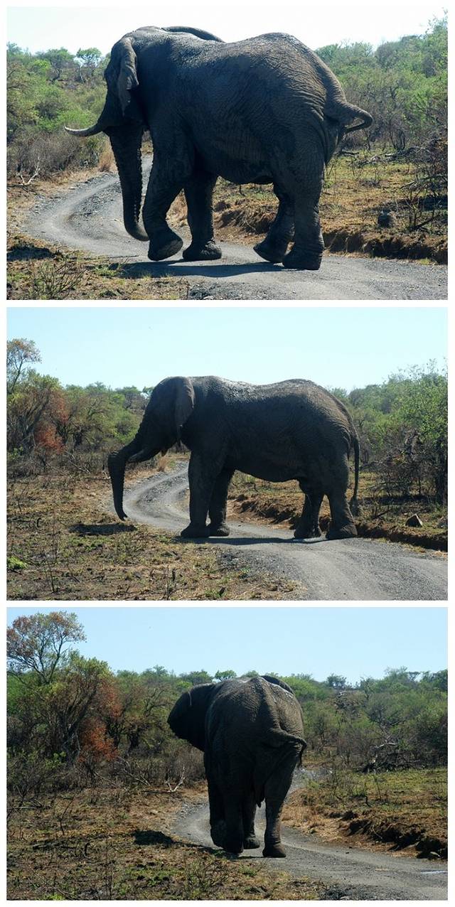 比如一头大象突然出现在车子前进的方向,最近的时候距离我们只有几米,大家连说话声都刻意放低了,生怕惊扰到大象,可它却像个没事儿人一样悠闲地走自己的路,Ranger说,它似乎今天心情不错呢。不过没多会儿,只见它停下脚步,就在我们车头前方不远,大大方方地小解起来……我们在轻声惊叹之余,当然也没忘了举起相机记录下这一幕。对于我们眼中“突然闯入”的野生动物,其实大多是ranger一路跟踪到的,所以看似随意选择的道路都有动物刚刚经过的新鲜印迹,若是由我们自己指路,恐怕几天也碰不上大型动物呢。
