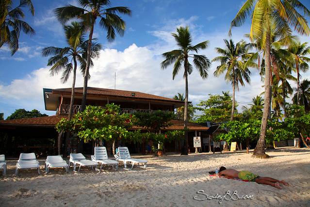 早餐后坐旅馆老板的车到机场。乘12:35的航班到宿务。宿务机场下机以后,乘出租车到4号码头(200P),买好到薄荷岛的船票。到薄荷岛的船有很多家公司在运营,各自的出发时间都不同,可以根据实际时间去选择购买。我买的公司是2GO TRAVEL的,船票来回是710P。船程大约2个小时,到达薄荷岛。薄荷岛上也有很多住宿,但是据说帕劳岛上的Alona海滩是薄荷岛上最漂亮的,所以就决定直接到帕劳岛上的Alona海滩边住下。乘出租车(300P)直接到了帕劳岛上的旅馆。