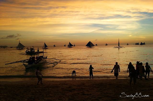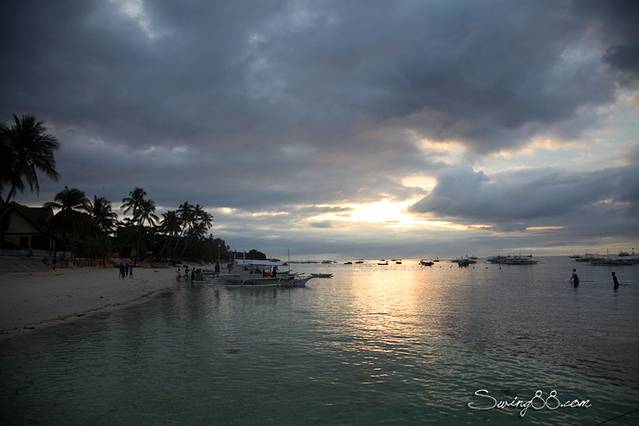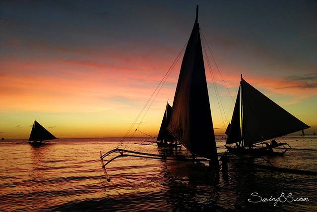 最后,不得不提的是,长滩岛的迷人黄昏。傍晚的长滩岛别有一番风韵。每当夕阳西下之时,无论是漫步沙滩,还是坐在帆船侧翼的编织网上,或者啜饮着香浓的鲜榨果汁,所有人都能找到最适合的方式欣赏日落的醉人美景。眼前的景象绝对赏心悦目——渔舟唱晚,情侣们在海滩边亲密地散步、嬉戏,红彤彤的夕阳向海平面下落,色彩变幻、分外美丽。