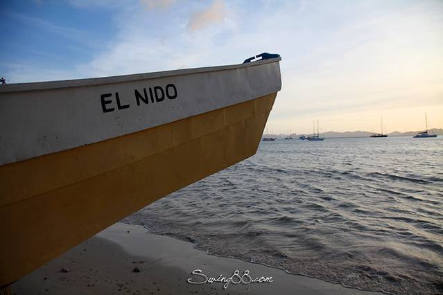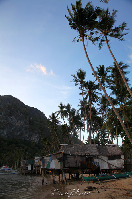 早上8:00到码头乘船到爱妮岛。船程是8小时,船上风浪很大,摇得难受,建议带备晕船药和穿好风衣。船上有午餐,船资是1800P/人。下午4:00左右到达爱妮岛,包了辆tutu车到汽车站旁边的海边小屋住下,拍日落。