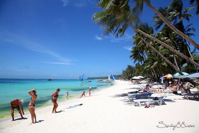 长滩岛有被誉为菲律宾最佳海滩的细白沙滩,有菲律宾最原味的海滩酒吧街,还有被当地人津津乐道的完美日落……怪不得菲律宾当地人以及精通玩乐的欧美游客那么喜欢原汁原味的长滩岛,韩国人甚至把长滩岛当作是最佳的蜜月度假胜地。在长滩岛旅游,你可以乘帆船看日落,尝试潜水、风筝冲浪、海上降落伞等各种活动,累了还可以品尝当地廉价的异国美食,还有丰富的夜生活,这一切都等着你去体验。海边椰林摇曳,很多美女披着一袭轻纱徜徉于椰树间, 蓝天、碧海、清风、白沙……远离尘嚣的天堂近在咫尺。
