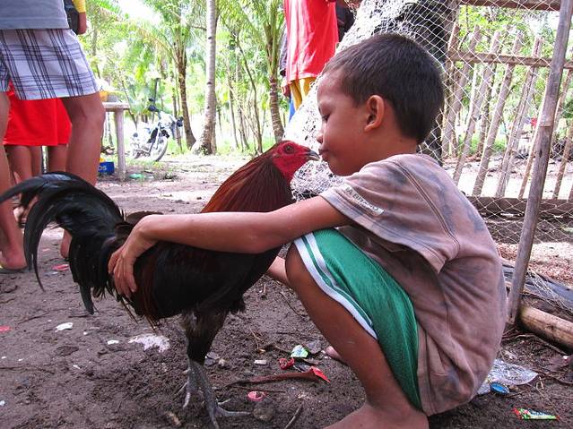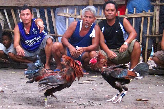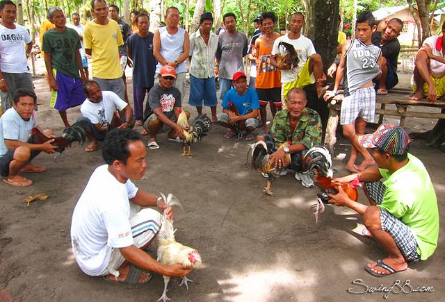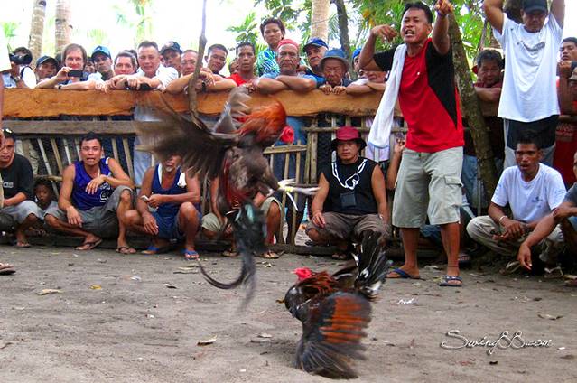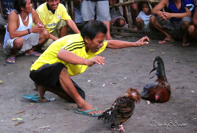 在周末的时间,大多数的地区都会举办斗鸡活动——各家各户都把自己驯养的斗鸡带到角斗场上一决高下。斗鸡活动的规模也各有不同,规模小的诸如乡村举办的,决斗场就是简单地用竹子围起来;规模大的有如在首都马尼拉举办的“斯莱舍杯”世界斗鸡大赛,舞台侧围观的观众就有好几千人。