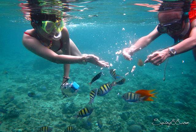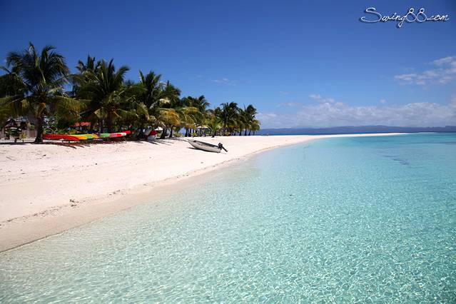 “妈妈拍丝瓜岛”岛长只有两公里多,宽一公里多,不大,绕岛走一圈,大约只需2小时。但东南西北面各具风情各有玩法:可穿过棕榈树林,走进岛上的村落,生活很平静,到处可见热情的笑脸,还有棕榈树叶铺成屋顶,藤编作墙的屋子,周围鲜花盛开,让人感觉生活也可以这么简单而美好。岛上地势平缓,四周是金色的海滩,其中靠南的Cocobana海滩和Logon海滩,水清沙幼,风平浪静,很适合游泳和浮潜。这里的珊瑚很漂亮,透过清澈的海水可以清晰的看到色彩绚丽的珊瑚礁,骐磷鱼、海马、海葵以及其他各种海洋生物也非常丰富和吸引。北边的村子还保留着原始的斗鸡习俗,每天下午都有斗鸡活动,很热闹,非常值得一看!