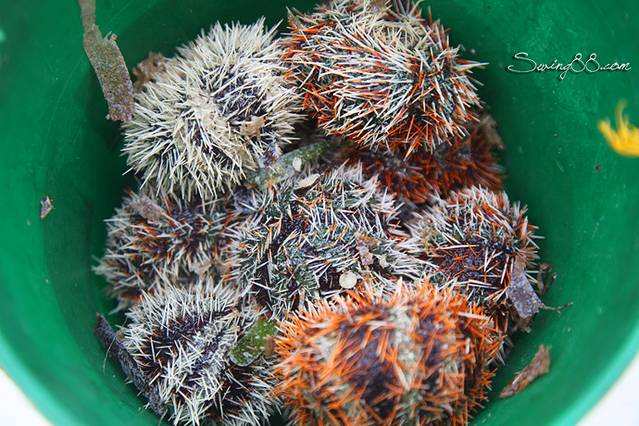 不得不提的是,喜欢吃海胆的朋友一定不要错过。我们用四十人民币买了一小筐。剥开来放在你手心上就吃。虽然是生的,但是一点也不腥,还有点甜味,非常可口。在国内实在很少有机会能吃到这样鲜活的海胆。
