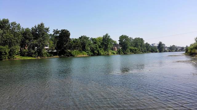 出了“老屋故事”走不远便到栖河边。这里是郴州大兴土木建设的“百里西河”的一段,河里是清流,河堤有步行道绿化带,路是柏油双车道,路边不时有老宅子出现,车不多,是一个不错的跑步线路,脚又痒了,再忍几天等扭伤好了再说。