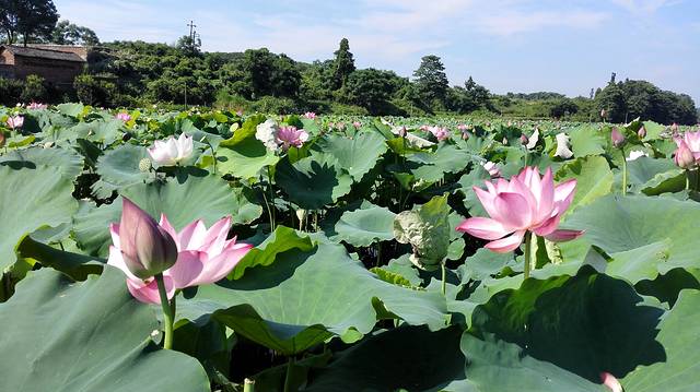 依依惜别执手泪眼美女别鸡的一幕之后,我们从粉店出发,到桥头拐左,是一条很好的柏油路,然后路左边突然出现一大片望不边花势正盛的荷花!让人意外。从三都流华湾回来后,以为今年的荷花锦簇已成回忆,不料人间八月芳菲尽,车头荷花始盛开。这地方是栖凤渡镇庄门村九组,也叫车头。