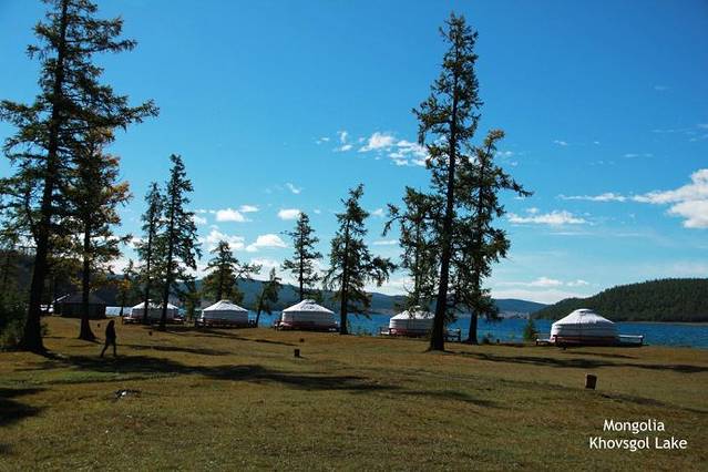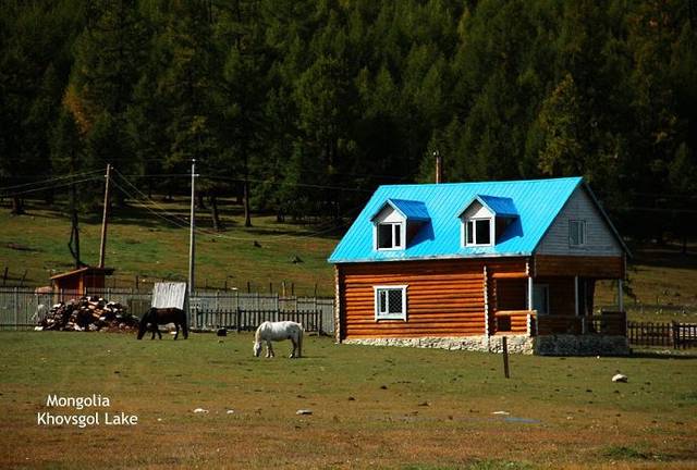 随着眼前慢慢出现的湖面和零星的树木,一路上的颠簸也似乎好了起来,看着车窗外的风景,我不断发出赞叹。其实换做在别的地方,这也算是稀松平常的景象,但对于坐了两天车的我来说,却是难以置信的美景。我贪婪的看着淡淡的云,越来越多的植被,就连空气也似乎变得湿润起来。从特尔欣查干湖包车到达100公里外的小镇,又从小镇坐7小时的minibus到木伦,再从木伦坐bus,我们终于到达库苏古尔湖边的小镇哈特高。