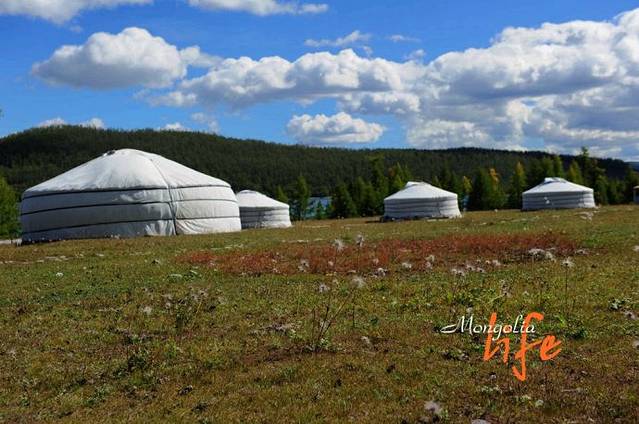 从山上就看到了星星点点的蒙古包,9月的季节,天气开始转凉,草开始变黄了,也到了蒙古旅行的淡季。
