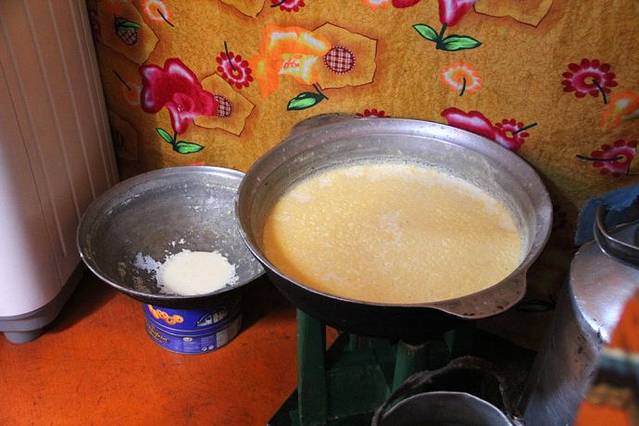 小超市是二层的,顺着楼梯上去可以坐在桌子边喝着咖啡,欣赏不远处的特尔新查干湖,只是现在到了淡季,天气转凉,没有什么人了。房子的后面有两个蒙古包,一个是老人自己住,另外一个是给客人用的。
