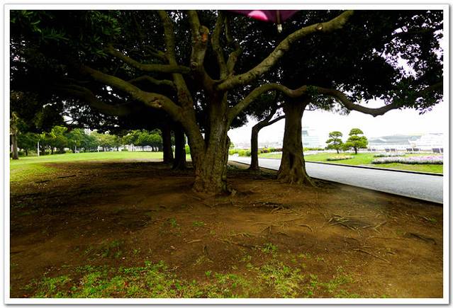 伊势神宫的停车场,据说是日本最美的停车场,四周被樱花包围着。