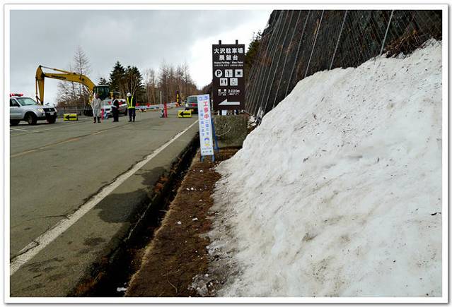 沿着盘山路上富士山的途中,看到了富士山还没有消融的黑雪。