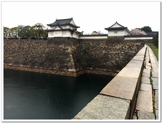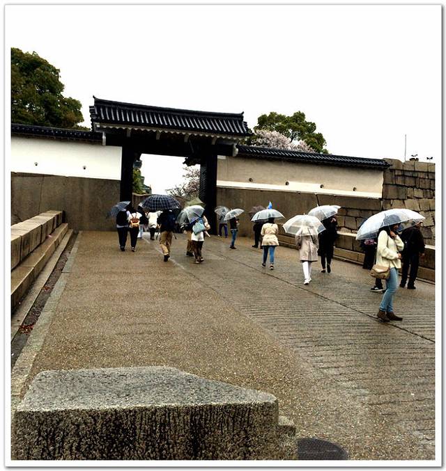 我们到达大阪城下的时候,天空飘起小雨,冒雨游古城也是一番意境。