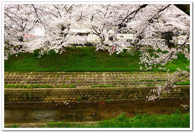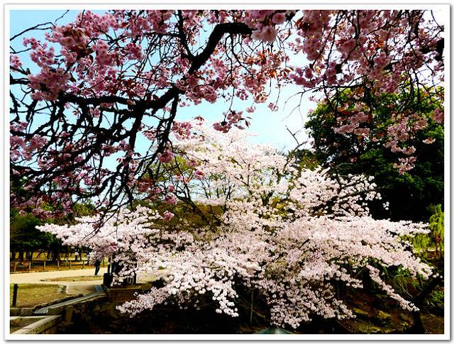 翌日我们前往奈良游玩,在进入奈良之前的一条小河旁,我们看到铺天盖地的樱花树开放,朋友为了我们欣赏和感受这种被怒放樱花氛围,特意在街边找了一个停车场。