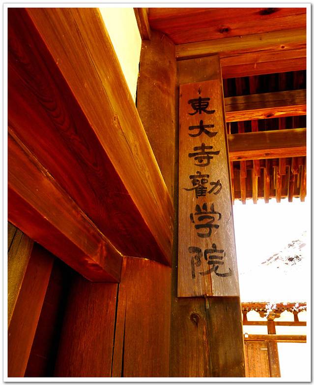 东大寺不仅是祈祷天下太平、万民安康的道场,同时还是积极推进教理研究、负有培养学僧重任的寺院。奈良时代,法相、三论、俱舍、成实、华严、律等六宗已传到日本,东大寺六宗兼学,尤重华严。南大门上高悬“恒说华严院”匾额。东大寺院内还有南大门、二月堂、三月堂、正仓院等。