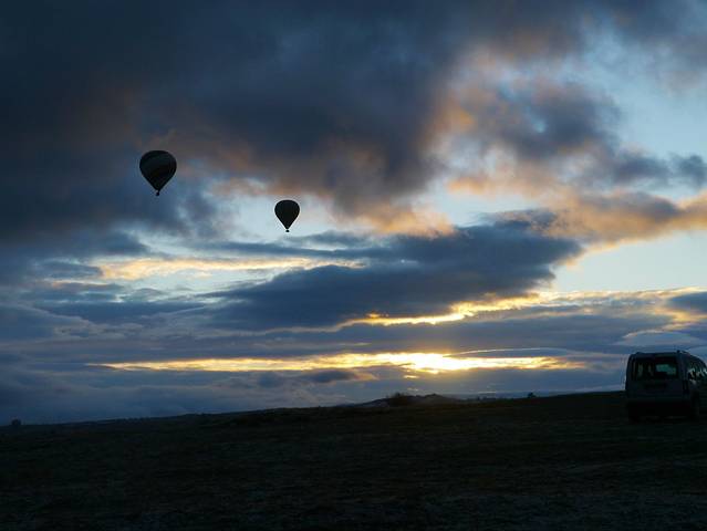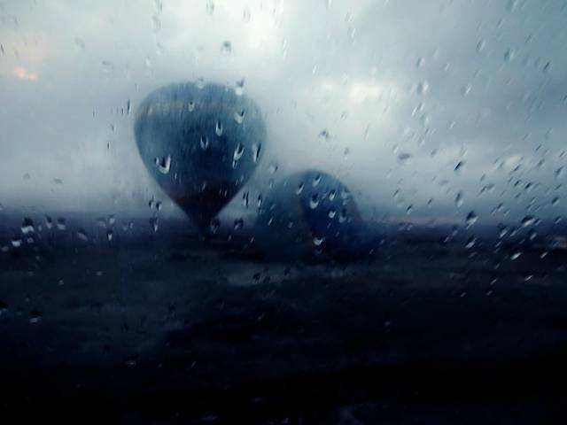 阴雨天的日出时分,抵达热气球起飞地点