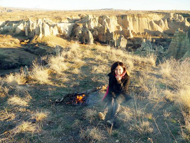 Honey Valley可说是当地人的私房景点,有非常美的日落景色,我们用杂草生了火取暖,聊得很开心,但我惦记着回Goreme的 Sunset Point 看日落,就请她们送我去山下的巴士站。
