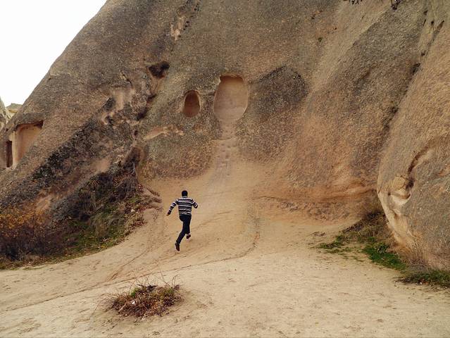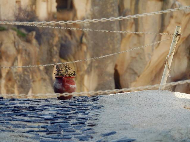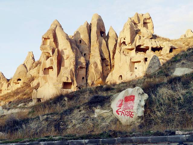 这天里最难忘的画面,就是我从空无一人的玫瑰谷入口独自走下深谷,二十分钟后,转身回望来时的路,却看见送我来的Hasan Kabalci (Kelebek Hotel 的经理)始终站在山顶,看着我走的路,没有离去。他曾一度怀疑我穿着长筒皮靴能不能走完4小时的山路,也曾担心我在谷中迷路(事实证明他的担心是有意义的),还说要先带我走到谷底,都只能一一谢绝了... 于是当时,我们一人在山顶一人在谷间,他向我挥手,喊了句 “take care”,我向他挥挥围巾致谢,转身开始自己的徒步。