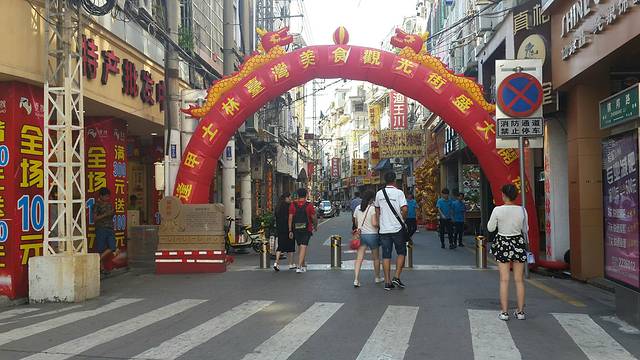 而就在前几天发现了一个汇聚台湾特色小吃的聚集地—— 逢甲士林台湾美食观光街。从轮渡走进中山路,第一个分岔路就是镇邦路了。再进去不到20米就可以找到这条美食街了,可谓是中山路西段最繁华的地段。路口的拱门十分明显,一看就是新开张,抱着好奇心走进去,走一小段路就发现了这个金字招牌。一进门,我就发现了左边墙壁的一整张的庙口彩绘图,我真的太喜欢这张图了,看来老板是想把台湾原汁原味的台湾文化引进来。往里走,挂满了灯火通明的小灯笼,还有来回涌动的人群,两边档口琳琅满目的各种美食,瞬间就陷进去了,真的是被这种氛围感染到了。