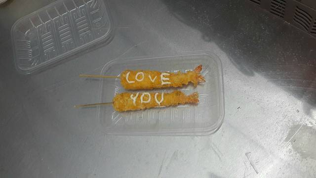 盐酥鸡也是台湾最常见的小吃之一,但也不仅仅只是卖这一种,还有其它的。最有趣的还是芙蓉虾,很适合情侣一起食用。摊主是一位年轻的小伙子,他会应顾客的要求,DIY一些字样在上面,例如1314520,love you这些字样在上面,也吸引了我们的眼球。我们买完之后,旁边的一位小美女也直接霸气的叫了一份。炸的黄金黄金的,吃在嘴里也十分的酥脆酥脆
