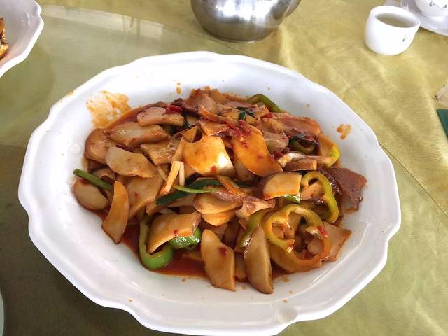 晚上在酒店楼下的排挡吃饭,味道还可以吧,大家都累了吃不了什么了。