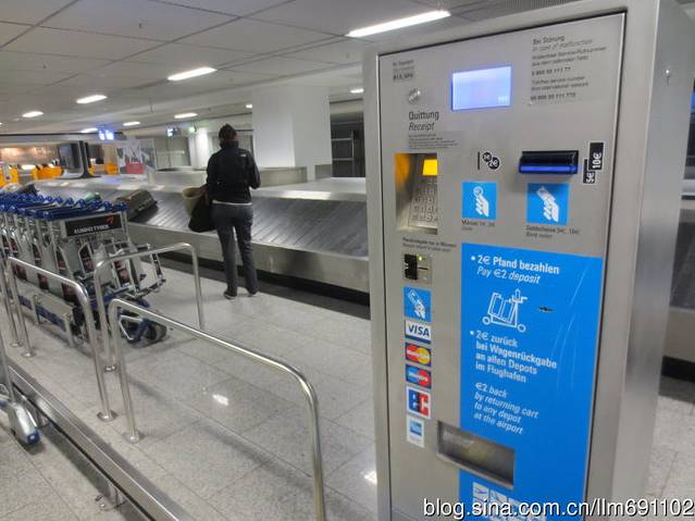如果要使用行李车,需要在此处投入2欧元,才可以将车拿出,归还时可拿回2欧元。