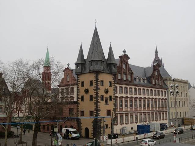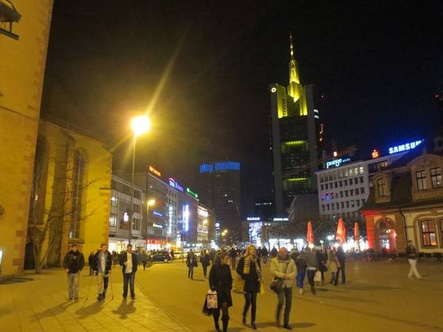 3月1日,走出法兰克福主火车站,找到预定的宾馆,由于是早上7点多钟,宾馆check in 的时间是11点,寄存好行李,在大街上闲逛。3月初的法兰克福还是有些寒冷,2013年德国的冬天,阳光照耀的日子非常难得一见。