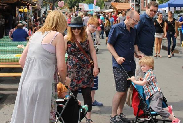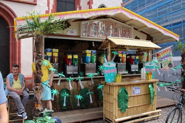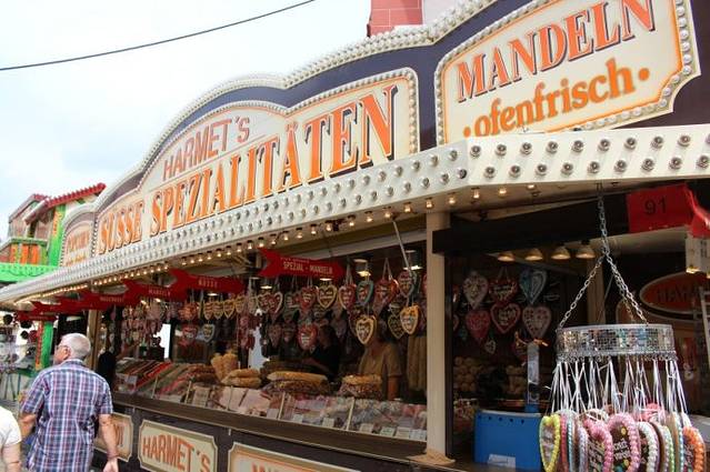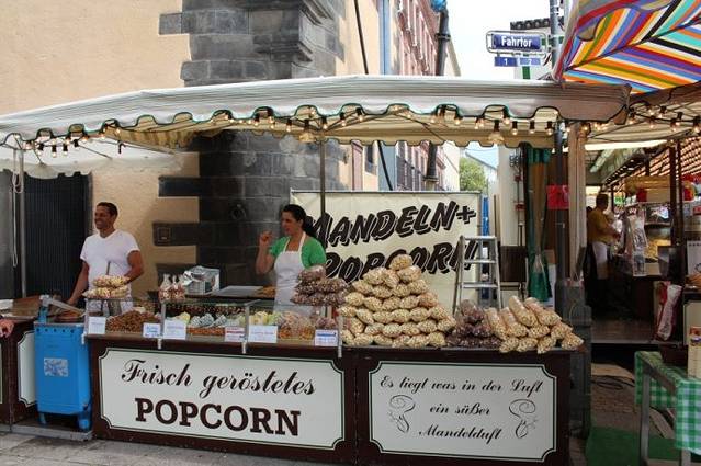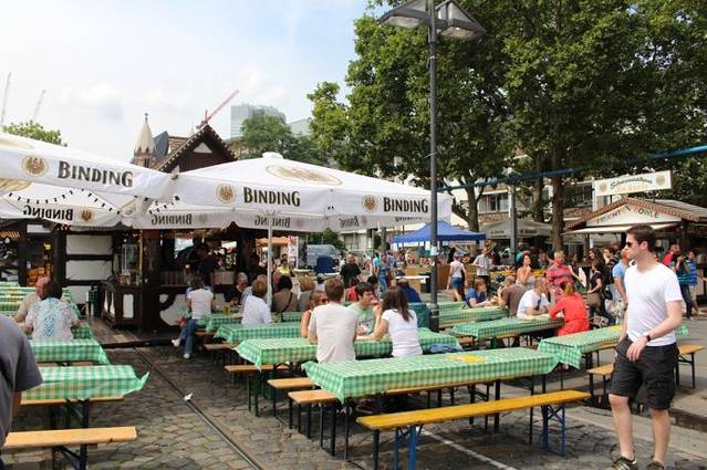 从小巷通往美茵河的路上布满了各种美食摊位。