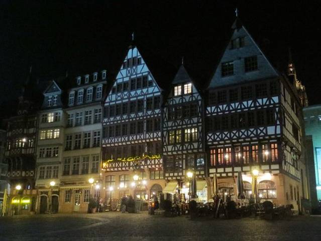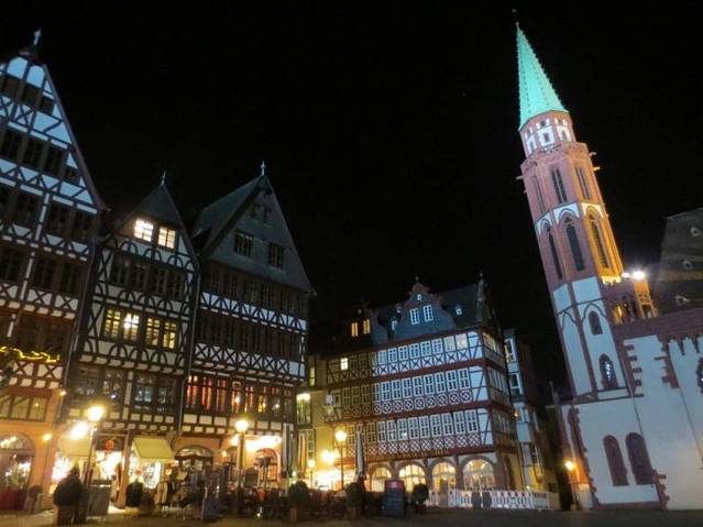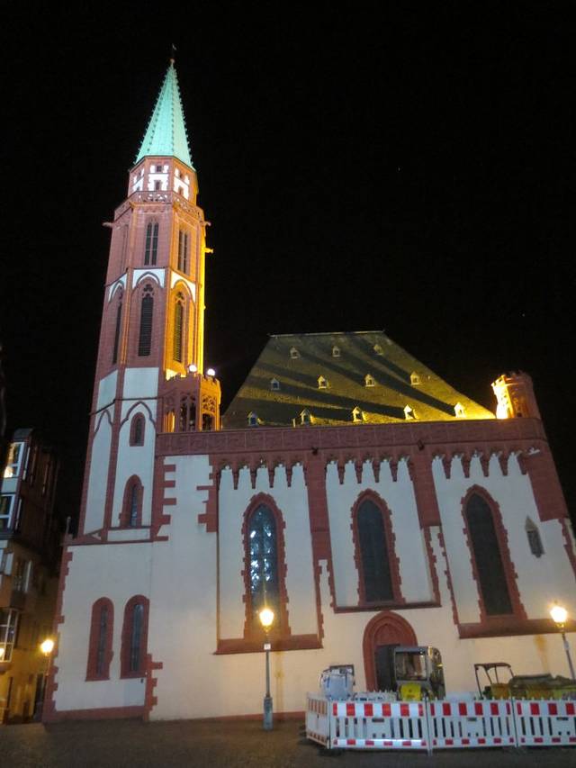 告别法兰克福前,又去罗马广场转了转。有着白天没有的特质,散发着迷人的魅力。老尼古拉教堂在灯光的照耀下显得庄重而美丽,高耸的尖塔向上帝传达着人们的祈愿,哦哦,上帝夜晚也是要睡觉的吧!