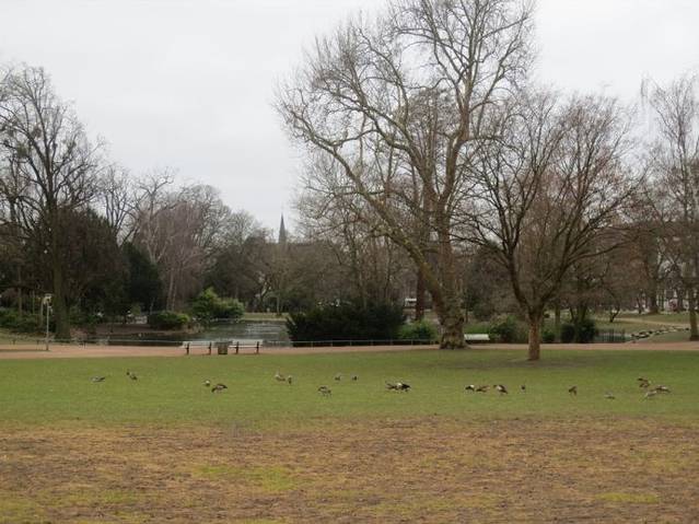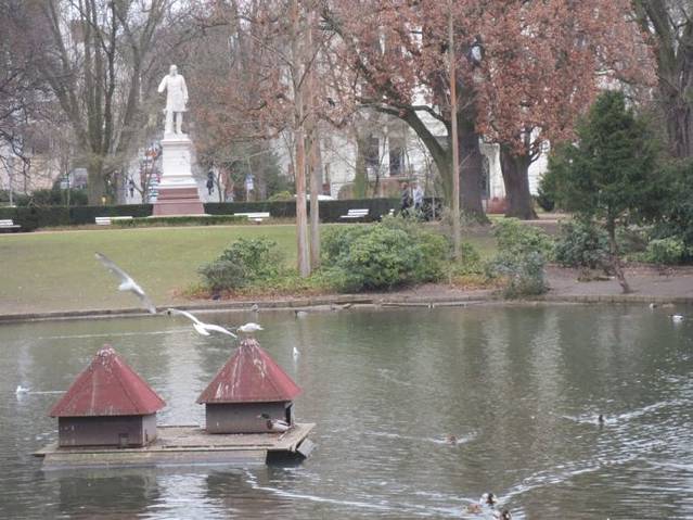 黑森州国家剧院的对面是一个公园,虽然是冬天,仍可见碧绿青翠,疏影暗香,还有一片波光粼粼的湖水,让人心旷神怡。