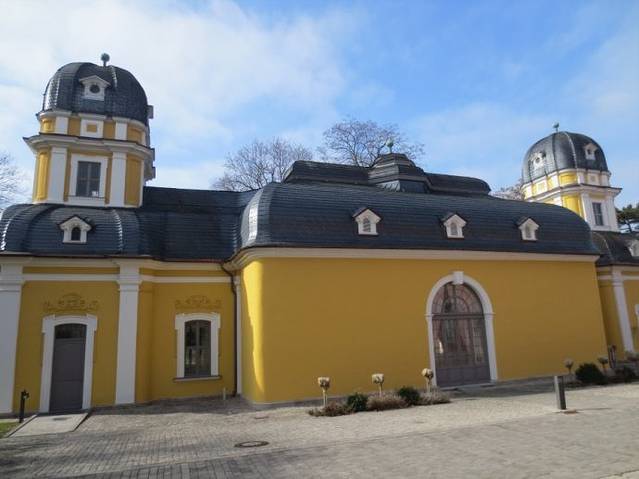 难得一见的德国冬日晴天,蓝天白云下,院内黄墙灰顶的亭子厅也显得那么明艳可爱。