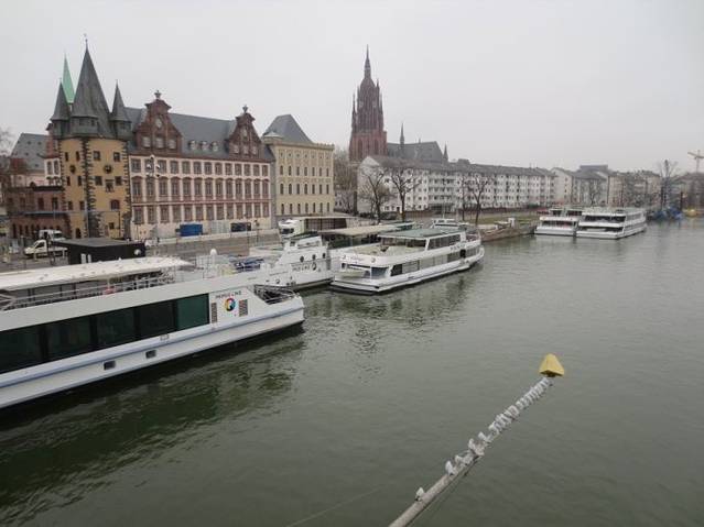 美茵河边停泊着许多游艇,天气晴好的情况下,乘着游艇、沐浴着阳光、迎着微风、伴着优美的音乐,畅游美茵河欣赏两岸优美的风光,该是一种多美的享受,这一切对我来说只能是一种奢求,白日梦罢了!